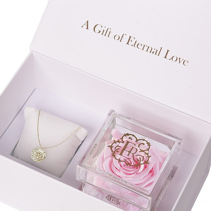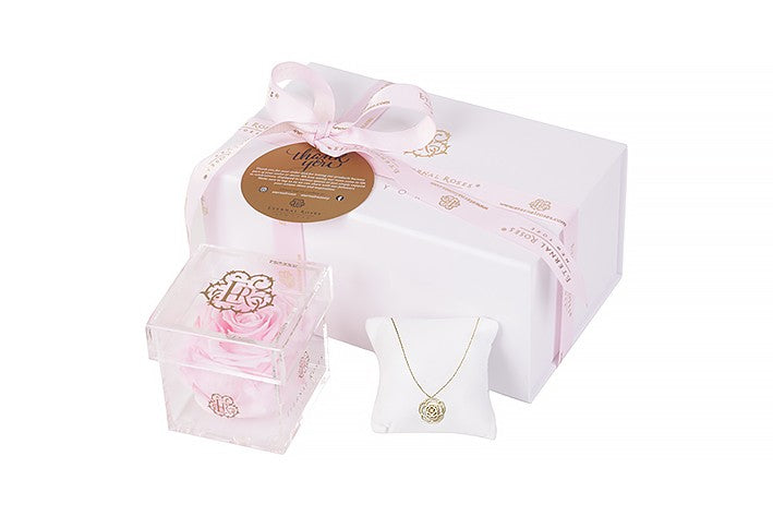 Preserved dried flowers - Rose necklace Gift Set in Pink Martini
